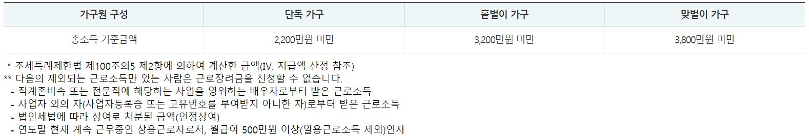 | 총소득기준금액 | 2,200만 원 미만 | 3,200만 원 | 3,800만 원 미만 |